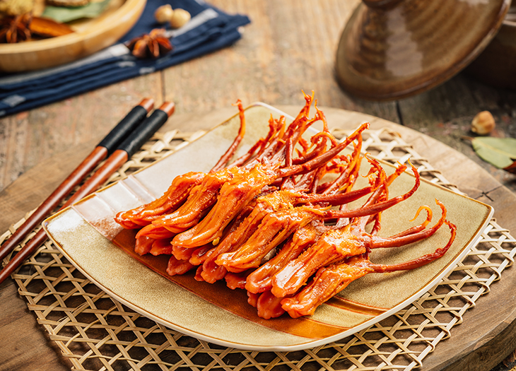 獨(dú)特工藝,蒸汽鹵制,醬鹵收汁,鎖住營養(yǎng)。28種植物香辛料,醬香鮮辣,締造全國特色風(fēng)味醬鴨。